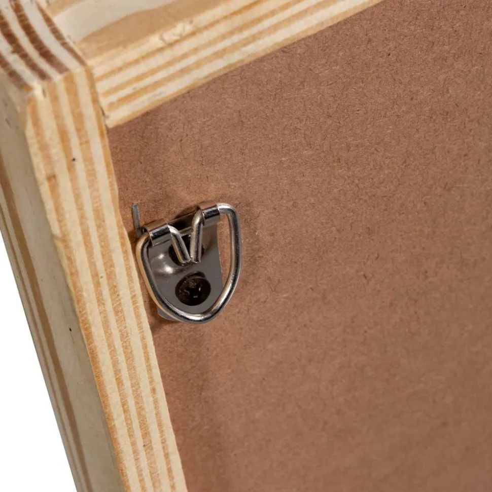 - Rahmen aus massivem Holz mit Metallösen an der Rückseite