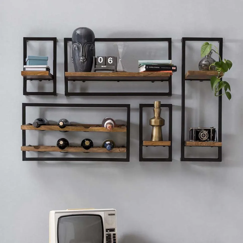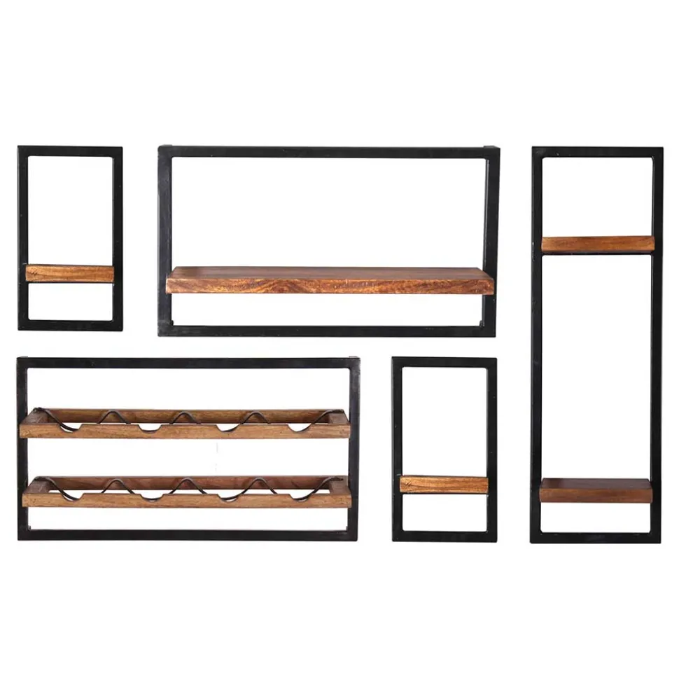 - Ausgezeichnetes Regal Set in Mangoholz Naturfarben und Antikschwarz