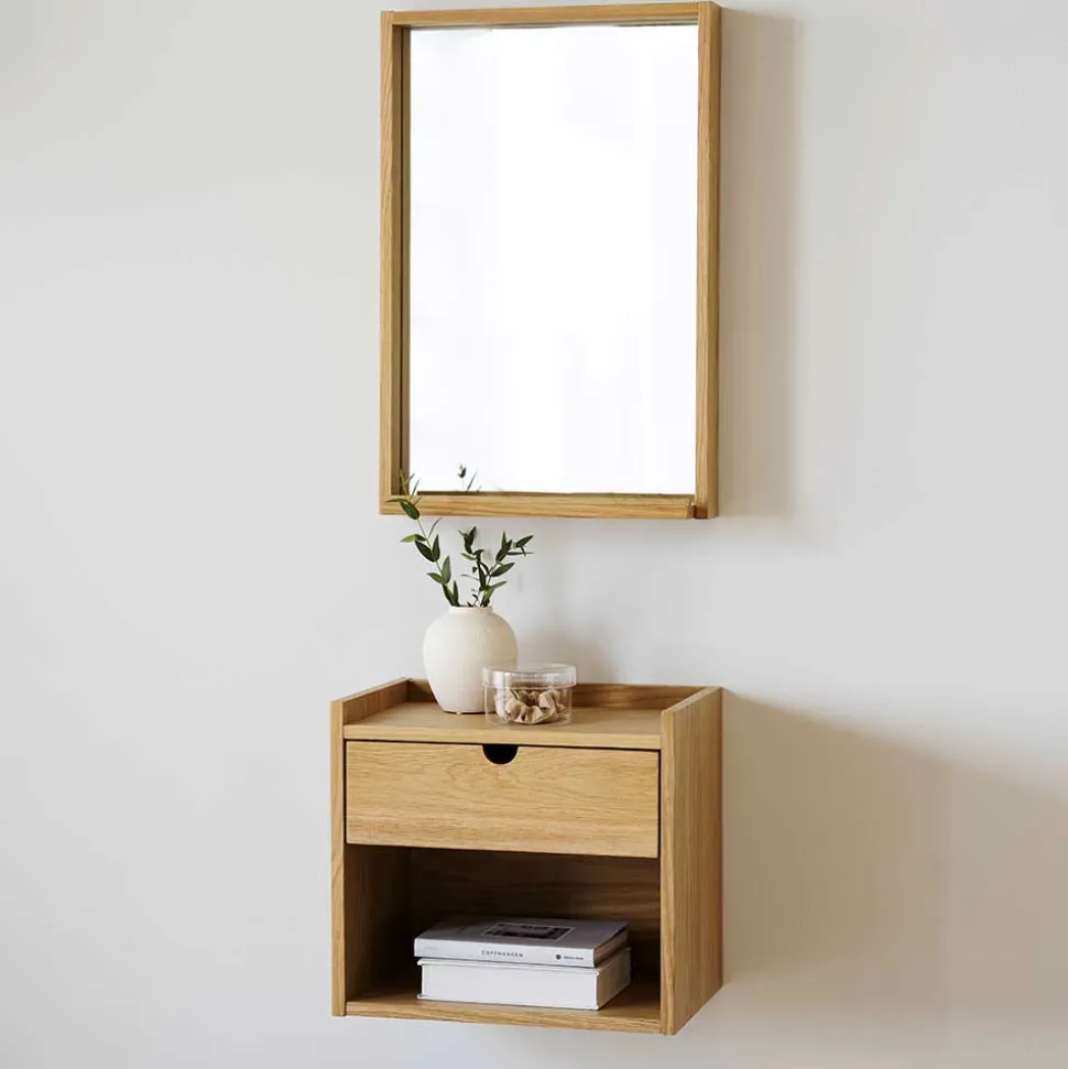 - Aus MDF, Spiegelglas und Eiche Massivholz gefertigt