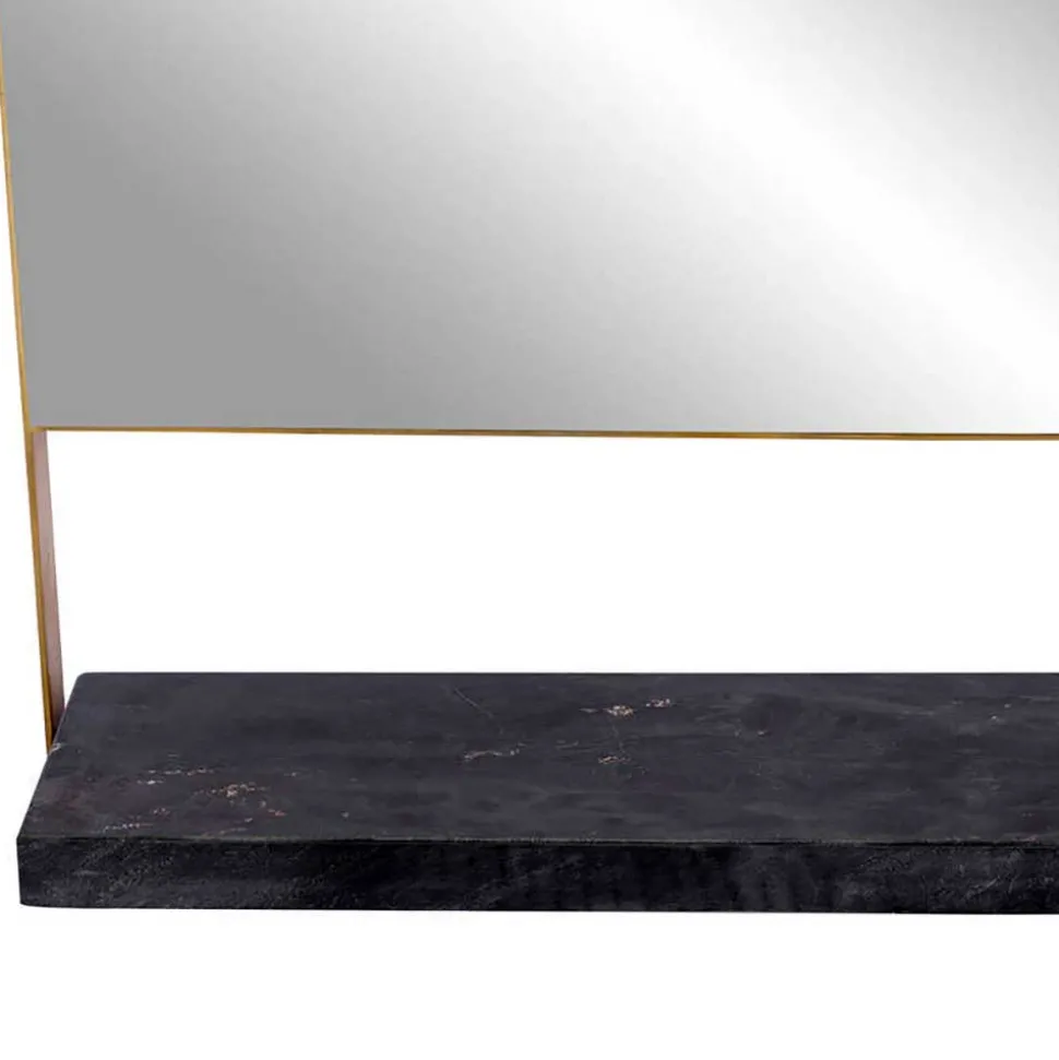 Der „Alvios“-Spiegel überzeugt durch die Verwendung hochwertiger Materialien. Das Spiegelglas sorgt für eine klare, präzise Reflexion, während der feine Metallrahmen dem Spiegel eine stilvolle, zugleich stabile Struktur verleiht. Besonders hervorzuheben ist die Ablage aus schwarzem Marmor, die nicht nur eine praktische Ablagefläche für kleine Accessoires bietet, sondern auch optisch einen edlen Akzent setzt. Der Spiegel ist in Handarbeit gefertigt, wodurch jedes Exemplar leicht von den Abbildungen abweichen kann und so zu einem einzigartigen Unikat wird.