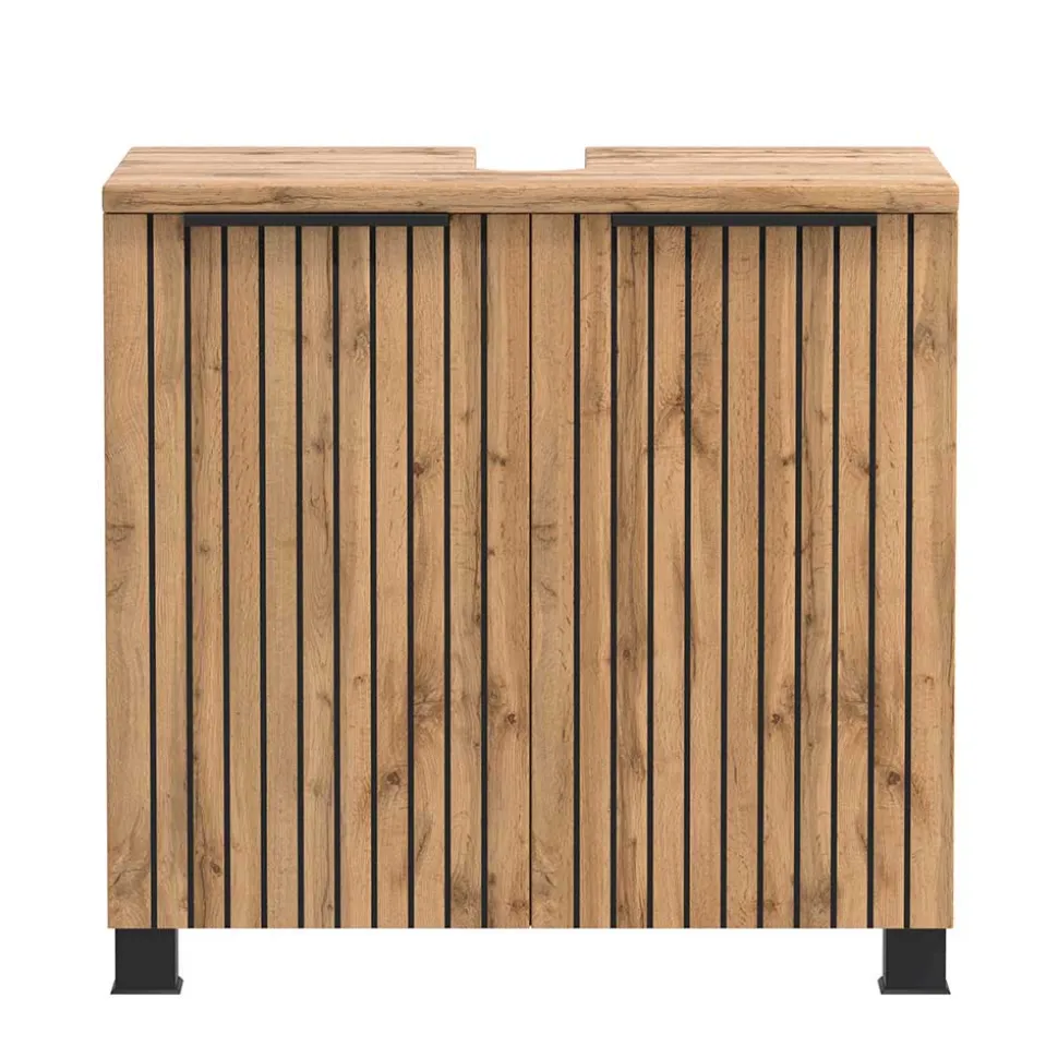 - Prima Waschbeckenunterschrank in Wildeichefarben und Schwarz