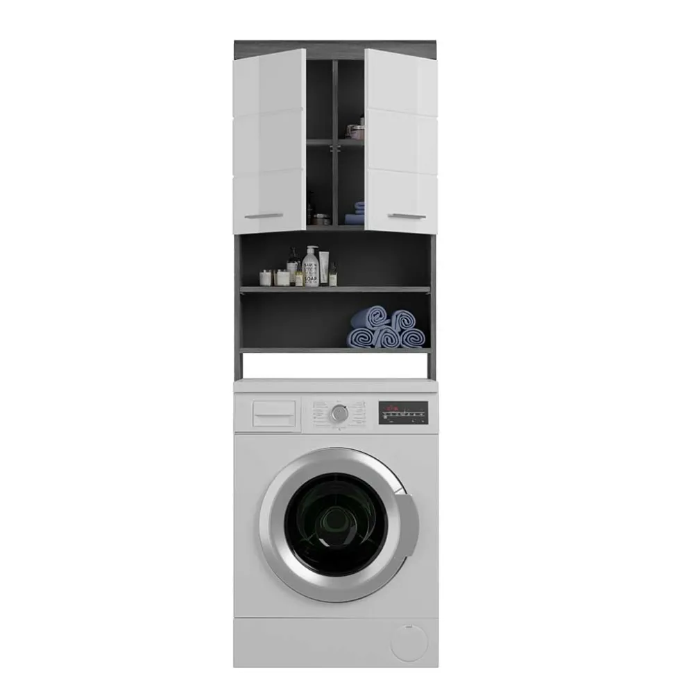 - Praktischer Waschmaschinenschrank in Weiß und Rauchgrau