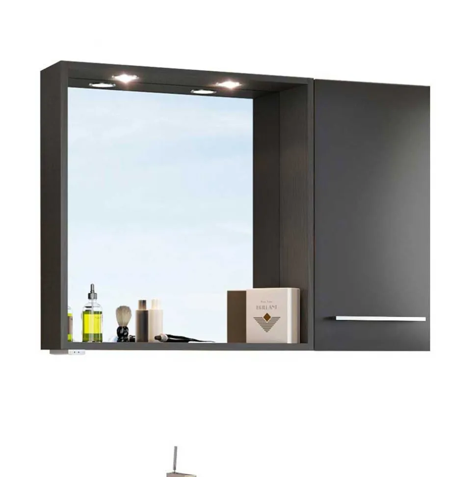 Das Spiegelpaneel (60x64x18 cm) sorgt mit zwei energiesparenden Touch-LED-Leuchten für eine brillante Ausleuchtung – perfekt für Ihre morgendliche Routine. Die schmale Ablage unter dem Spiegel bietet Platz für Ihre wichtigsten Kosmetikprodukte. Der Rahmen in Dunkelgrau rundet das Design stilvoll ab.