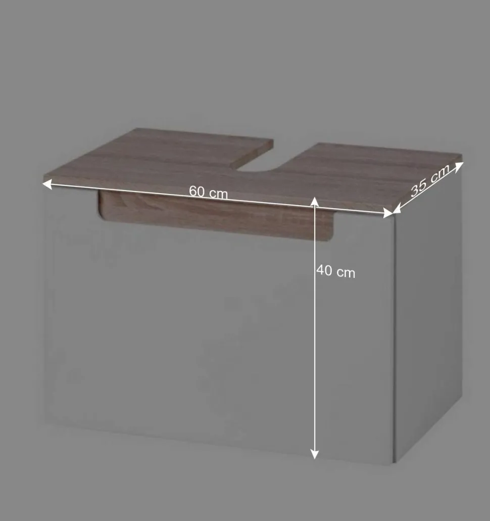 Mit einer Breite von 60 cm, einer Höhe von 40 cm und einer Tiefe von 35 cm nutzt Tymos den vorhandenen Raum perfekt aus. Trotz seiner kompakten Größe bietet der Unterschrank überraschend viel Stauraum – ideal, um Handtücher, Pflegeprodukte oder Reinigungsmittel ordentlich und griffbereit zu verstauen. Alles findet seinen Platz, und Ihr Badezimmer bleibt aufgeräumt und stilvoll zugleich.