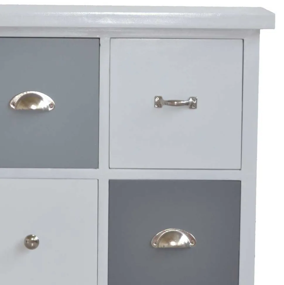 - Schubladen mit unterschiedlichen Griffen aus Metall