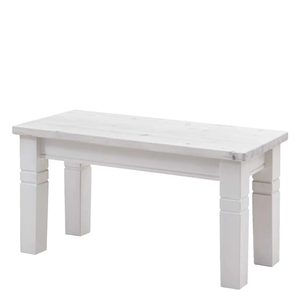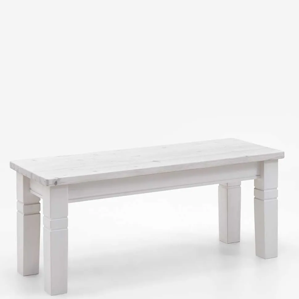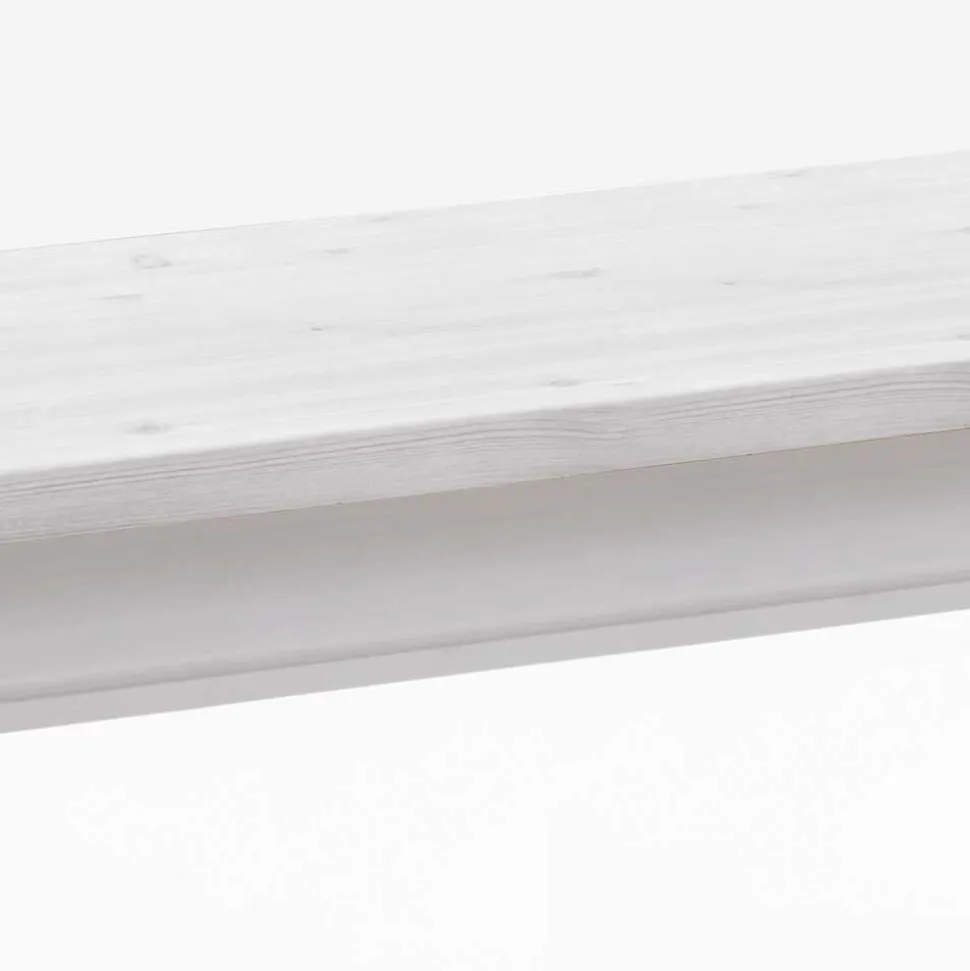 Gefertigt aus hochwertigem, massivem Kiefernholz, überzeugt „Satumare“ nicht nur durch ihre stabile Bauweise, sondern auch durch ihre warme, natürliche Ausstrahlung. Kiefernholz ist robust, langlebig und besitzt eine charakteristische Maserung, die jeder Bank eine individuelle Note verleiht. Die weiß lackierte Oberfläche lässt dabei bewusst die Struktur und die natürlichen Aststellen durchscheinen – für eine Optik, die Ursprünglichkeit und Stil in Einklang bringt.