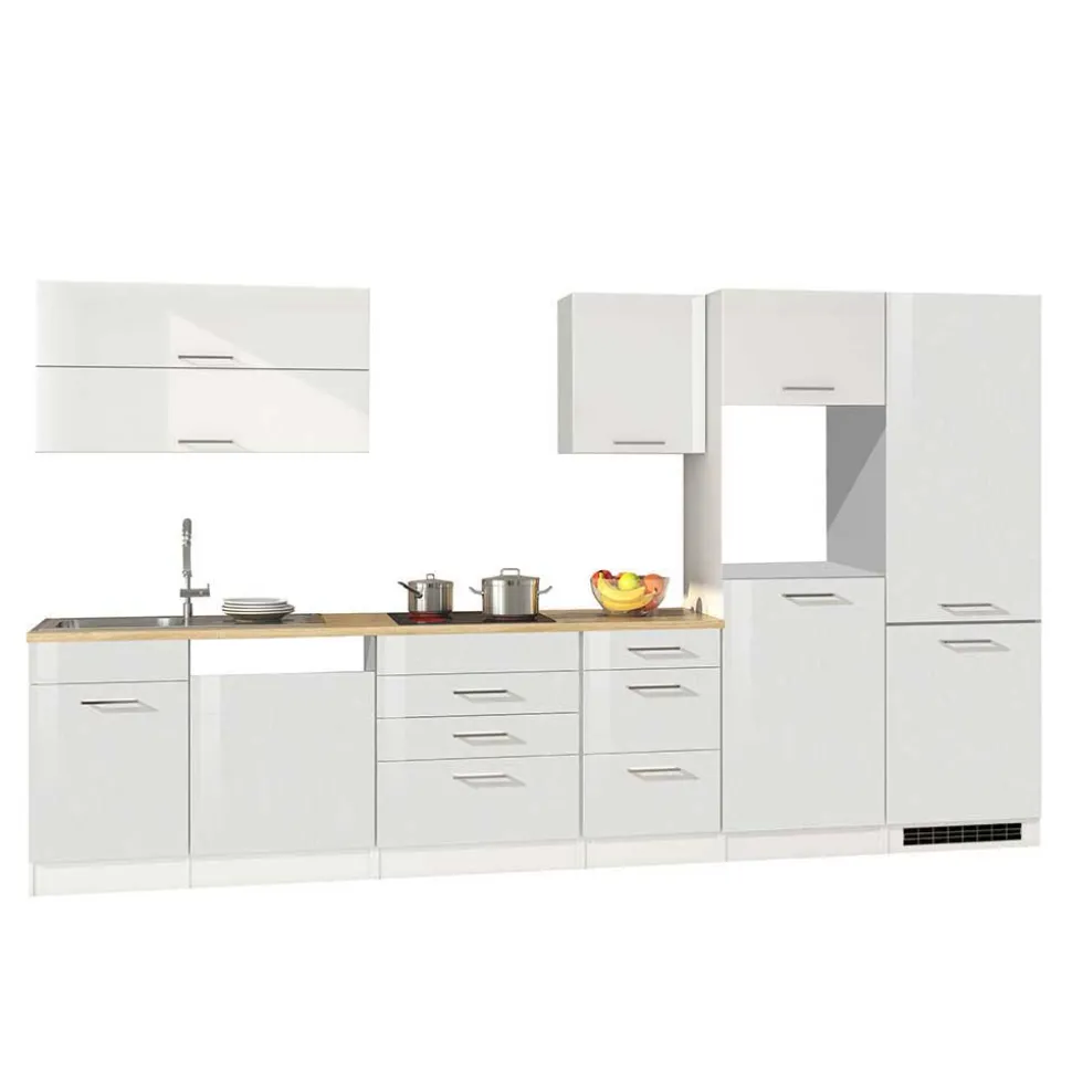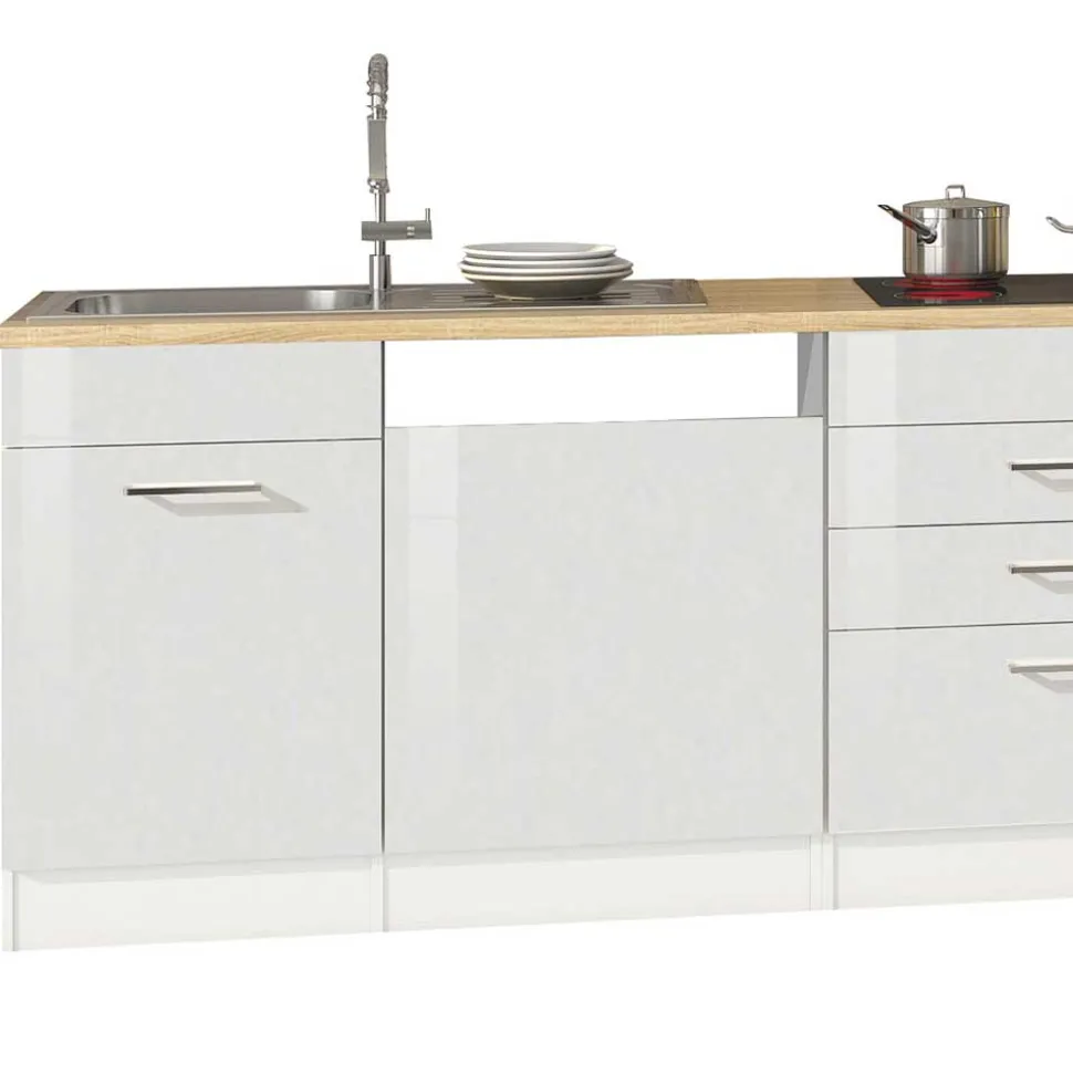 - Erstklassige Küchenzeile in Weiß Hochglanz und Sonoma Eiche