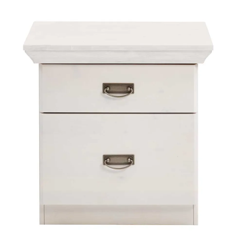 Mit den Maßen 58 cm Breite, 57 cm Höhe und 48 cm Tiefe fügt sich die Kommode harmonisch in jeden Raum ein. Die formschön gefräste Oberplatte verleiht ihr einen besonderen Charakter. Zwei geräumige Schubladen auf Metallauszügen bieten viel Platz für Ihre persönlichen Gegenstände. Die Schubladen gleiten sanft und sind dank der formschönen Bügelgriffe aus Metall leicht zu handhaben.