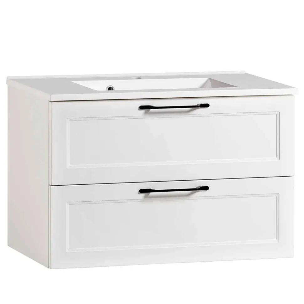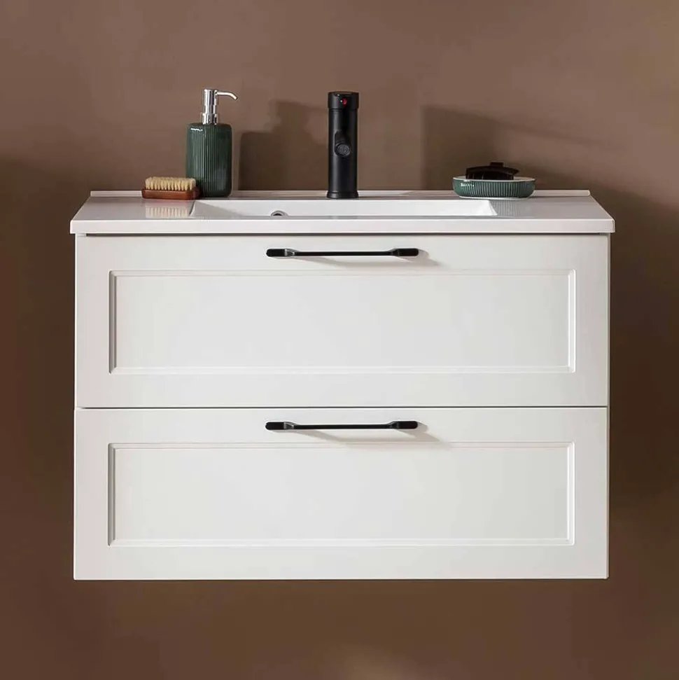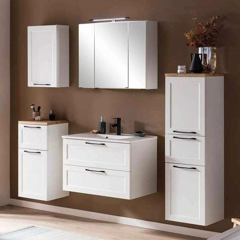 Inspiriert vom Charme ländlicher Wohnhäuser vermittelt der Landhausstil Wärme, Behaglichkeit und eine wohltuende Natürlichkeit. Typisch sind klare Linien, helle Farben und liebevolle Details – all das vereint sich im Design des „Gyatso“-Waschbeckenschranks. Das matte Weiß der Front in Kombination mit dem ebenfalls weißen, melaminbeschichteten Korpus sorgt für ein helles, freundliches Ambiente – ideal für einen entspannten Start in den Tag oder ein ruhiges Abendritual.