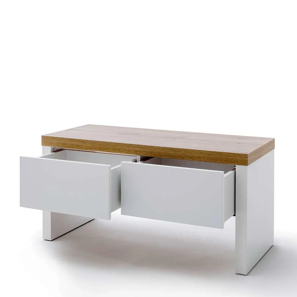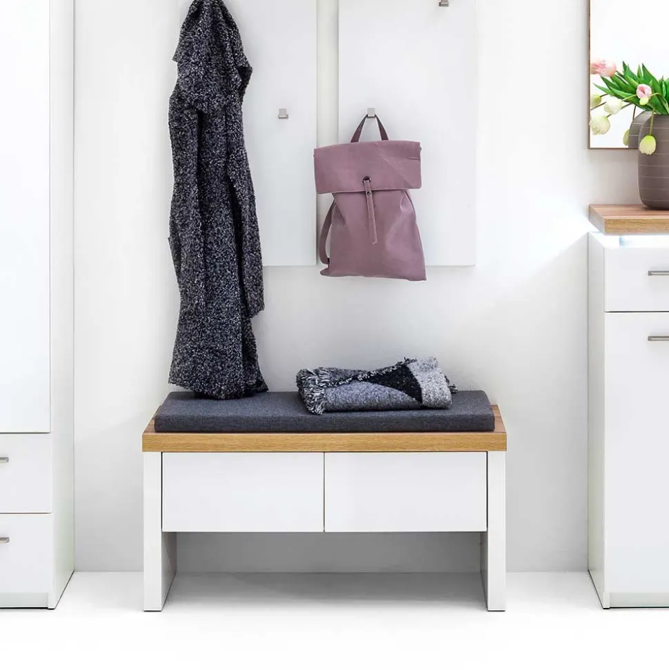- Robuste Garderobenbank in Weiß und Wildeichefarben