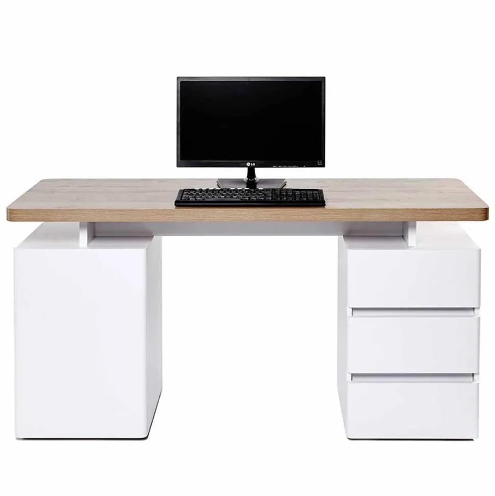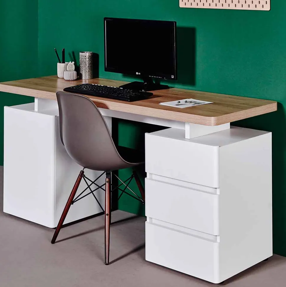 - Zeitgemäßer Schreibtisch in Weiß und Eichefarben