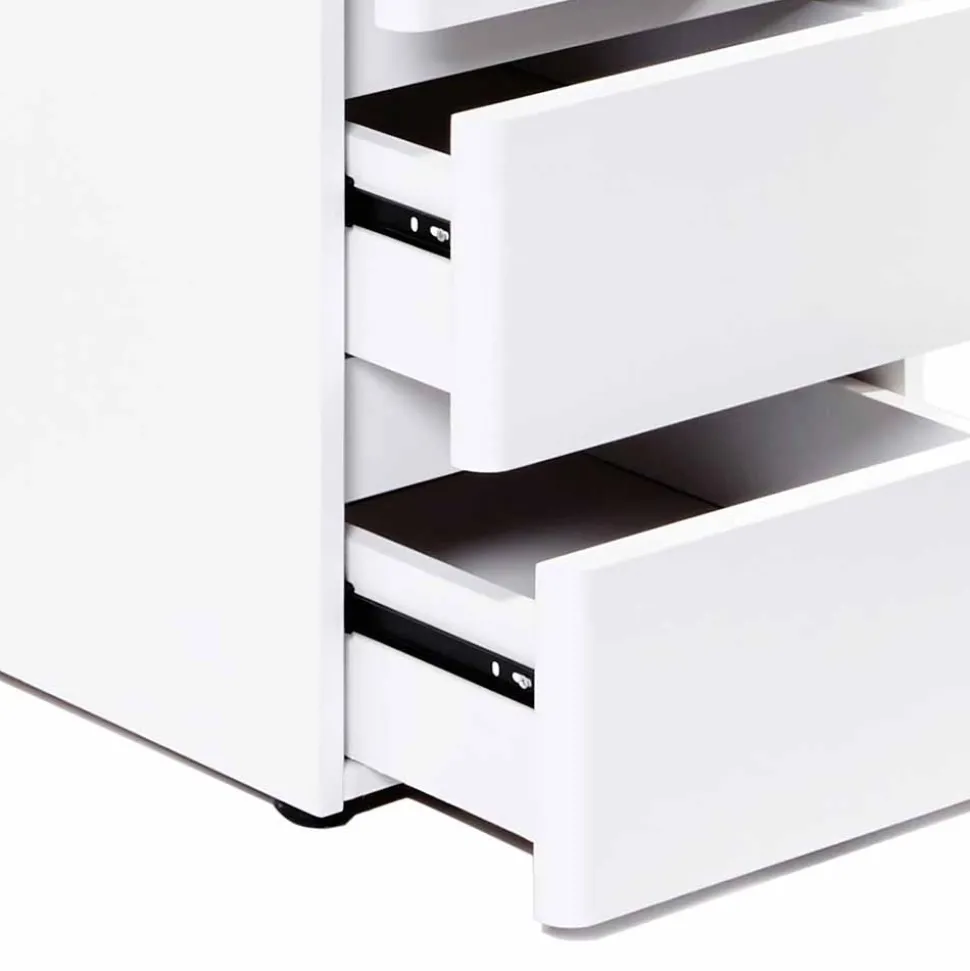 - Rechts drei Schubladen auf Metall-Teleskop-Auszug