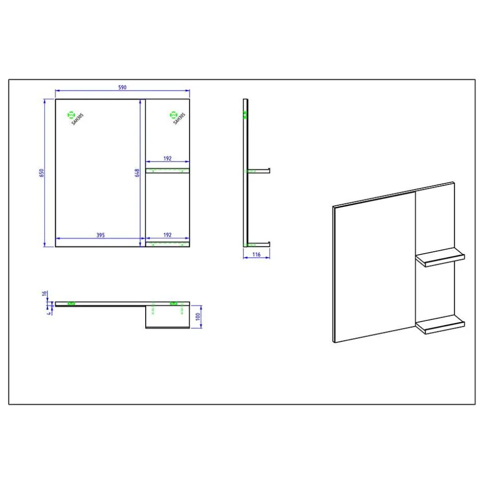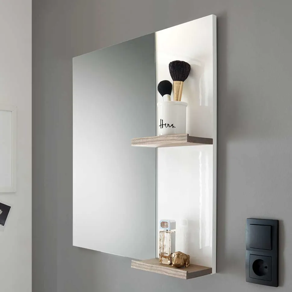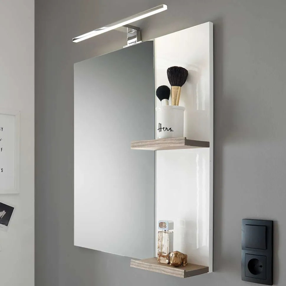 - Hervorragender Badspiegel in Weiß und Eichefarben