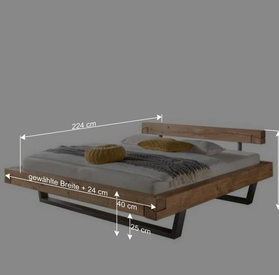 Wildeiche Balkenbett in Schwebeoptik Iloventa mit Metallkufen Industrial