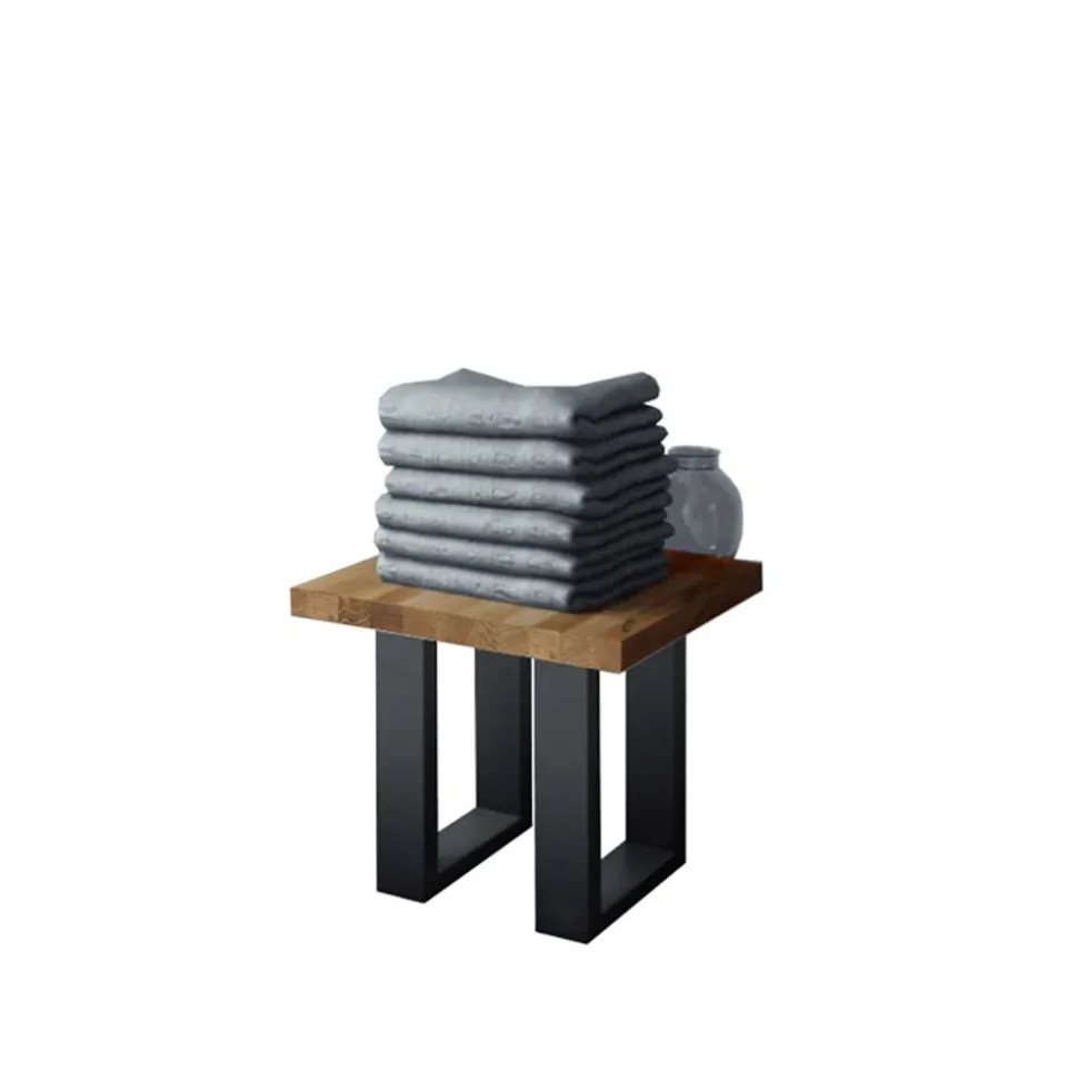 - Aus Wildeiche Massivholz (durchgehende Lamelle) und Stahl gefertigt