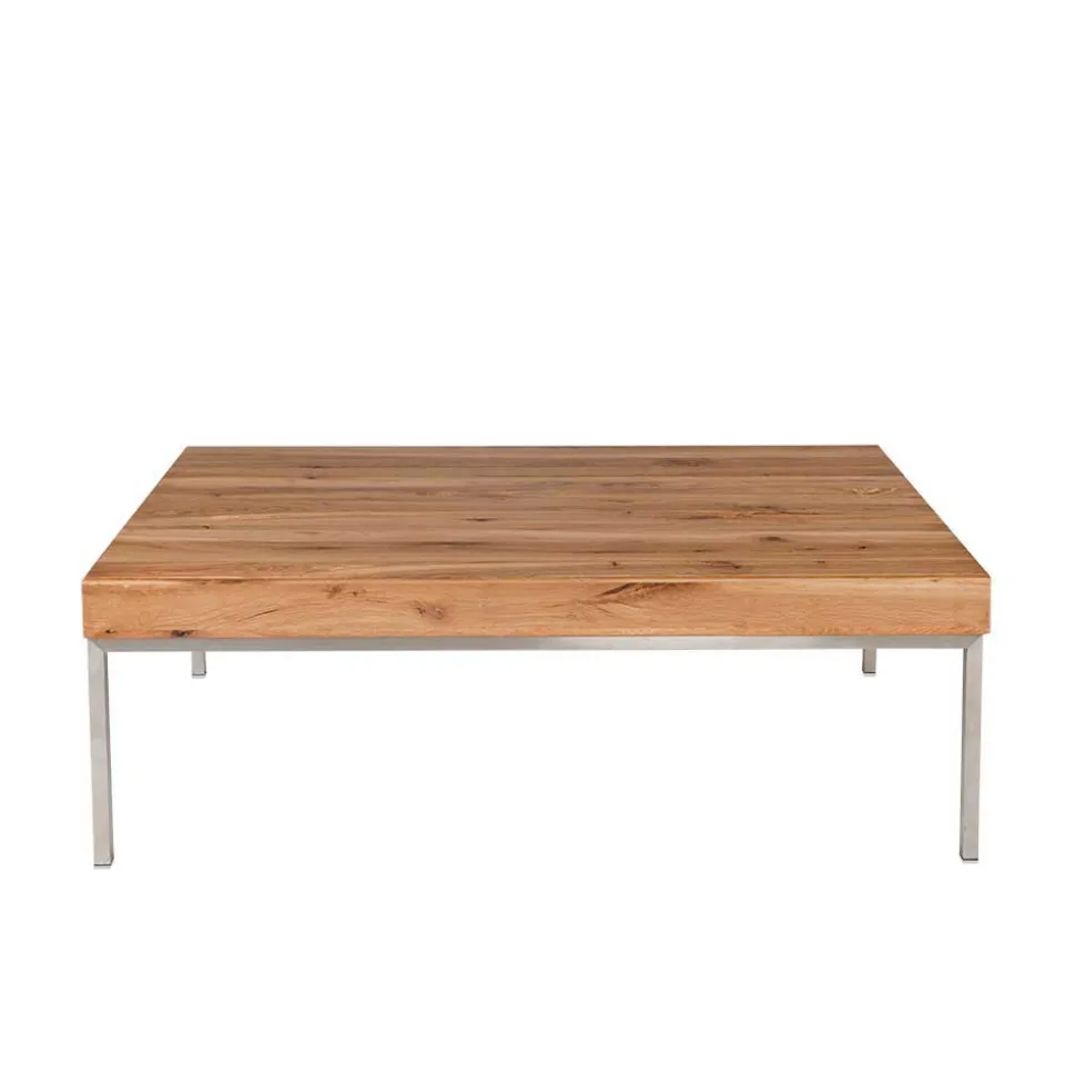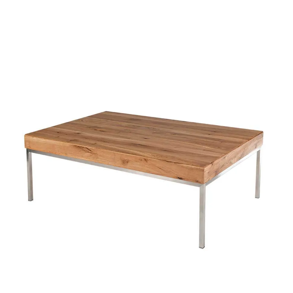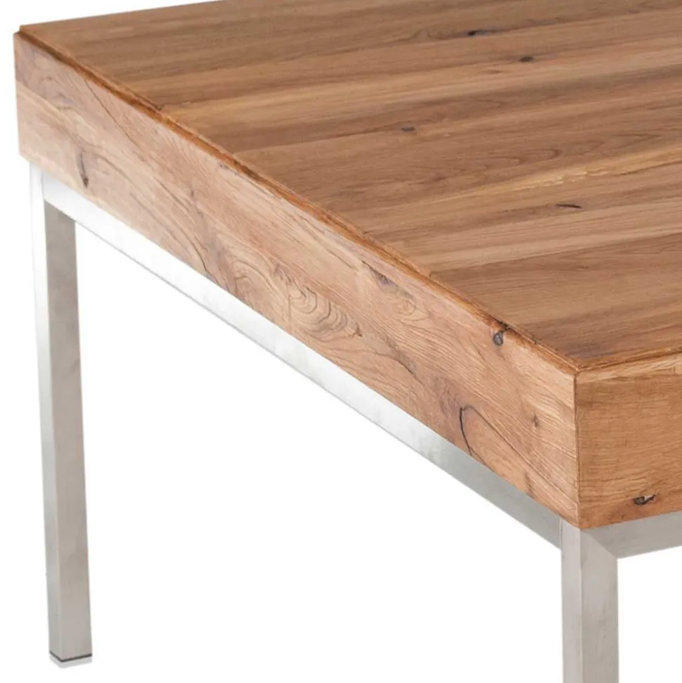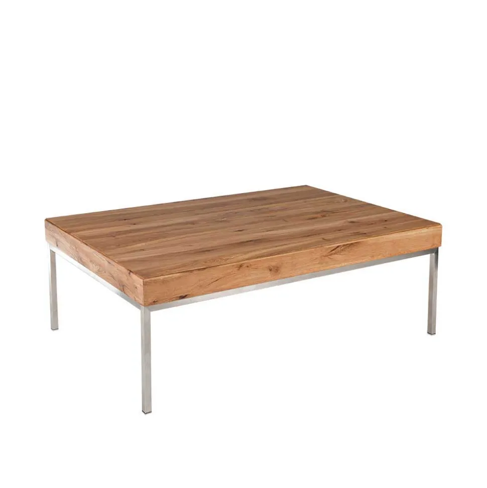 Wildeiche Couchtisch Silvia mit Stahlgestell in Edelstahl Optik