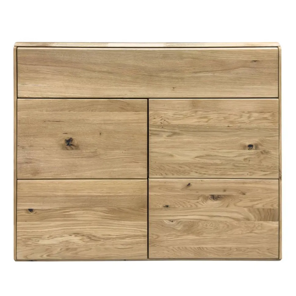 Gefertigt aus massiver Wildeiche, bietet die Kommode nicht nur eine besonders hohe Stabilität, sondern punktet auch durch die hervorragenden Eigenschaften des Holzes. Wildeiche ist robust, langlebig und trägt mit ihrem natürlichen Charme zu einer gemütlichen Wohlfühlatmosphäre bei. Die natürlich geölte Oberfläche betont die lebhafte Maserung, schützt das Holz und unterstützt ein gesundes Raumklima. Mit jedem Blick wird deutlich: Dieses Möbelstück ist ein echtes Unikat.