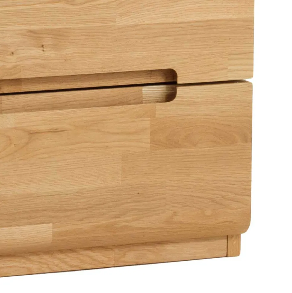 Eintauchen in eine Welt, wo Design auf Natur trifft: Die Nachtkommode „Rosario“ verkörpert die Schönheit und Robustheit der Natur in Ihrem Schlafzimmer. Gefertigt aus massiver Wildeiche, bringt dieses exquisite Möbelstück Wärme und eine beruhigende Atmosphäre in Ihren persönlichen Rückzugsort. Wildeiche ist bekannt für ihre Langlebigkeit und Widerstandsfähigkeit. Die individuellen Wuchsmerkmale jeder Kommode machen Ihr Exemplar zu einem Unikat, das seinesgleichen sucht. Die natürliche Maserung und die honigfarbene Ölung verleihen jedem Stück einen charakteristischen Charme, der Ihr Schlafzimmer in eine Oase der Ruhe verwandelt.