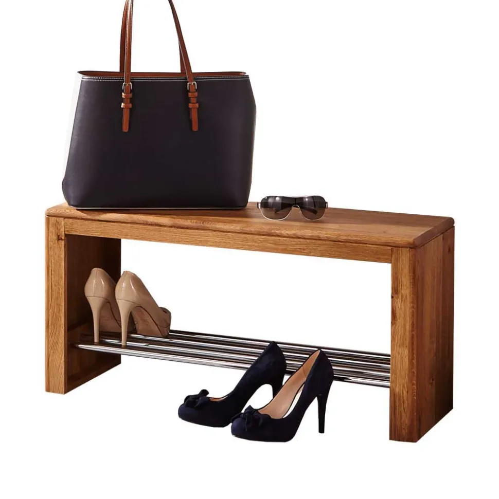 Warum kompliziert, wenn es einfach geht? Die Garderobenbank mit den Maßen 81x40x30 cm bietet dir einen bequemen Sitzplatz zum Schuhe Anziehen. Dank des stabilen Wangengestells ist sie standfest und langlebig – perfekt für den täglichen Gebrauch. Das integrierte Schuhgitter aus Metall unter der Sitzfläche schafft zusätzlichen Stauraum und sorgt dafür, dass Schuhe immer griffbereit und ordentlich verstaut sind. So bleibt der Eingangsbereich stets aufgeräumt.