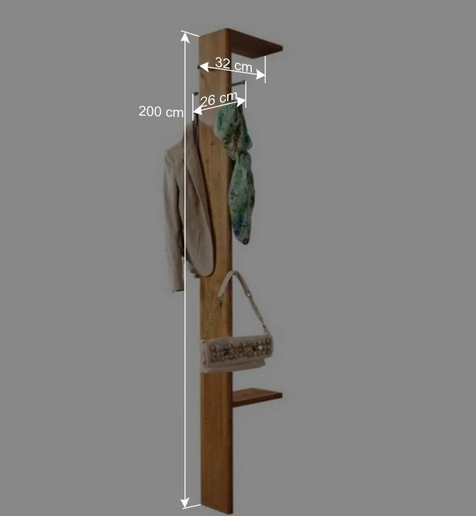 Mit ihren Maßen von 26x200x32 cm nimmt die Standgarderobe kaum Platz ein, bietet aber dank sieben Metallhaken ausreichend Raum für Jacken, Taschen und Accessoires. Die stabile Konstruktion wird stehend an die Wand montiert, was nicht nur optisch ansprechend ist, sondern auch für einen sicheren Stand sorgt. Praktisch, ästhetisch und ideal für einen gut organisierten Eingangsbereich.
