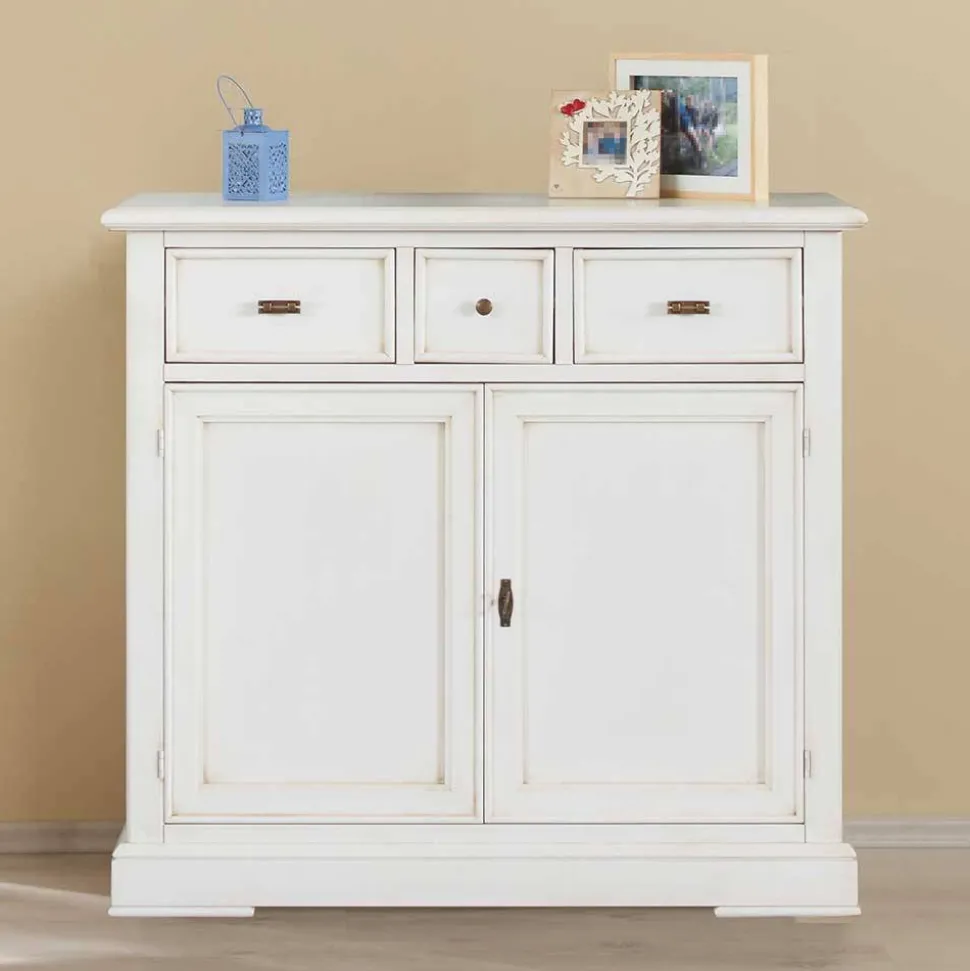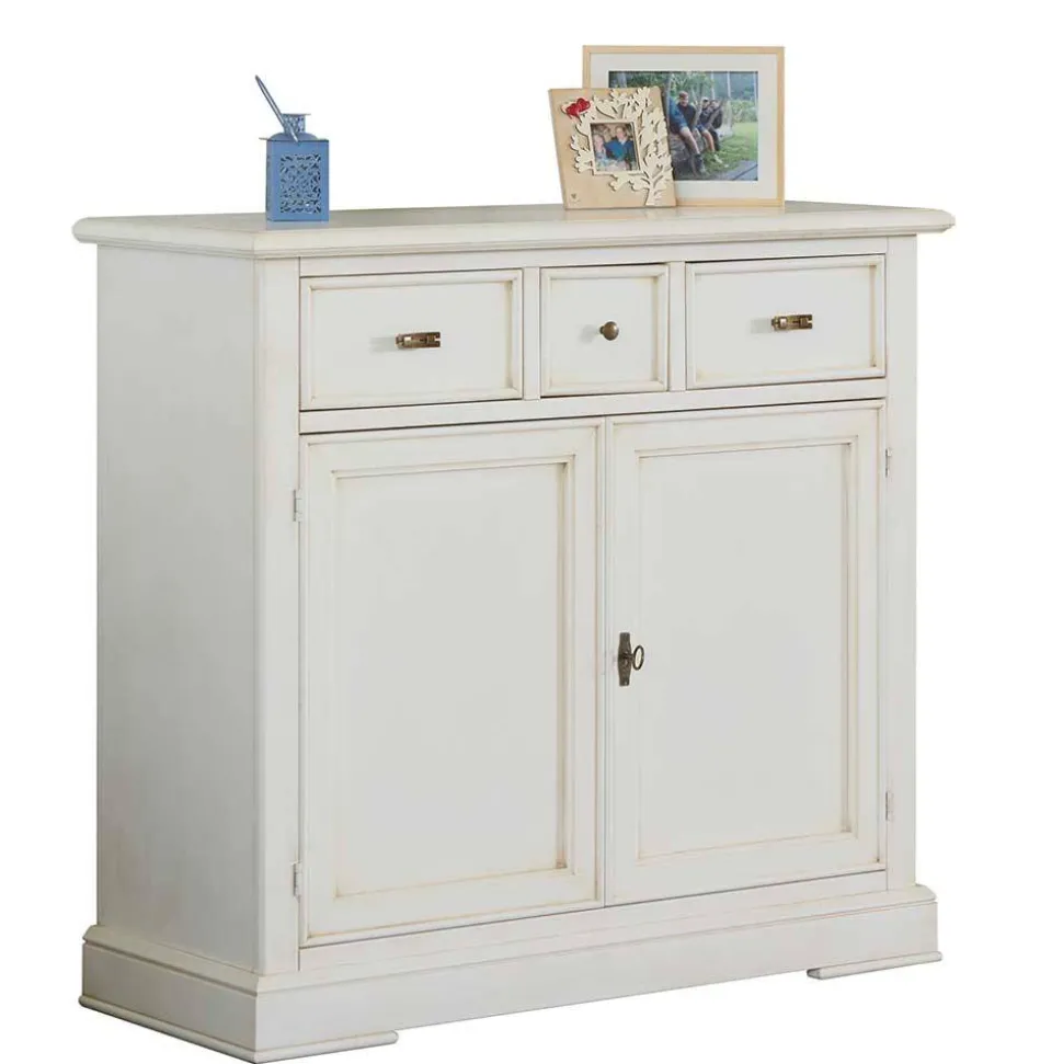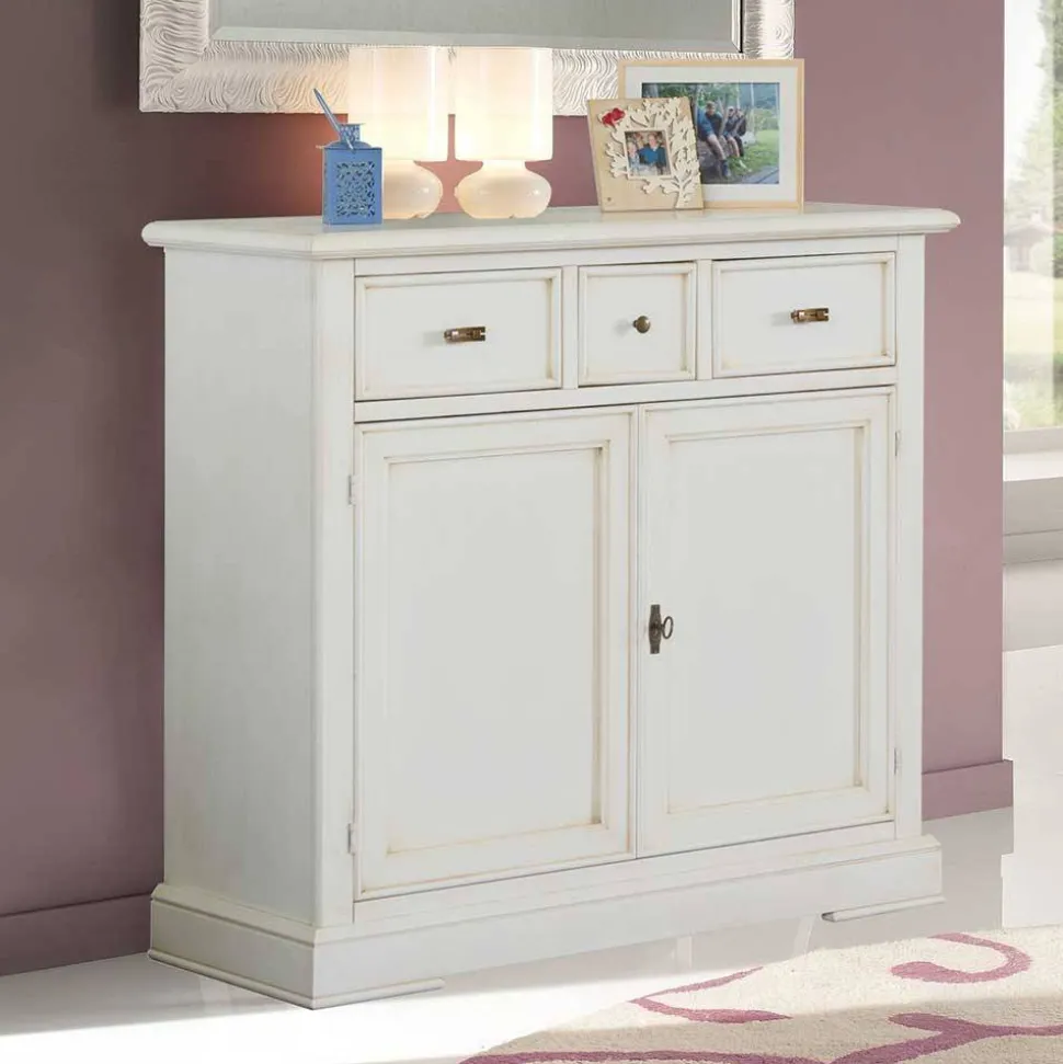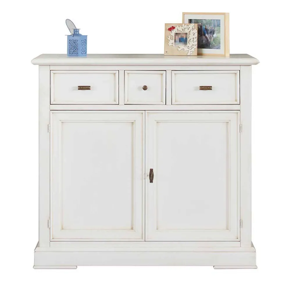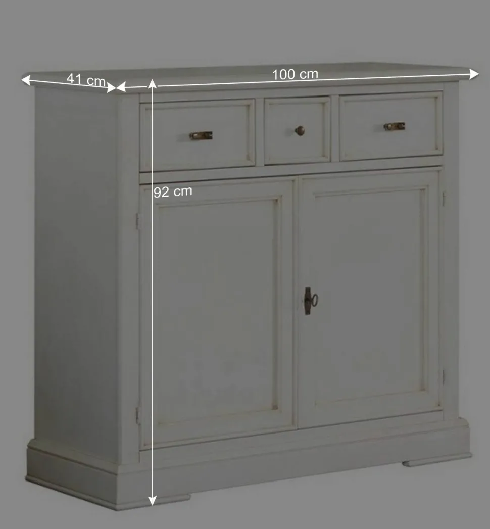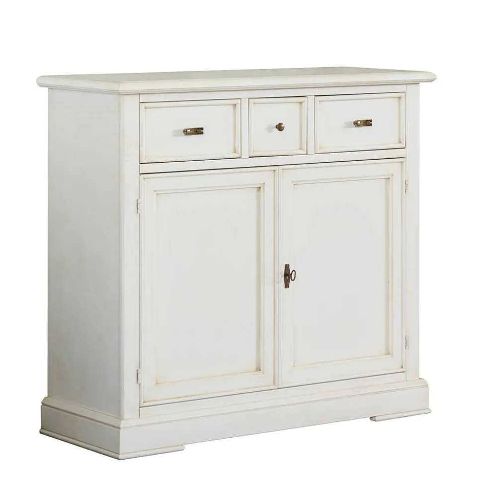 Die „Annot“ Wohnzimmer-Kommode vereint klassische Ästhetik mit funktionaler Raffinesse. Ihr edles Antikweiß-Finish bringt eine zeitlose Eleganz in Ihr Zuhause und passt perfekt in eine mondäne Einrichtung mit Stil und Charakter.
