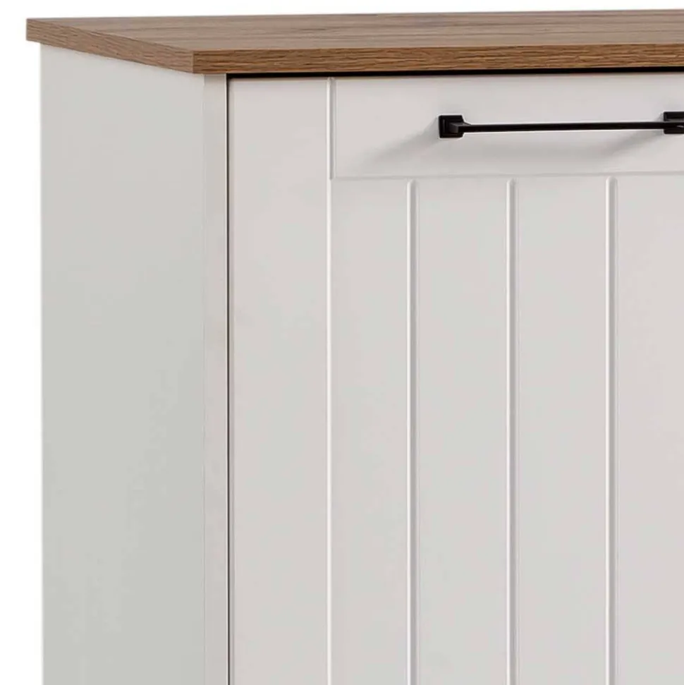 - Oberflächen pflegeleicht in Weiß matt und Holzoptik Eiche mit fühlbarer Struktur melaminbeschichtet