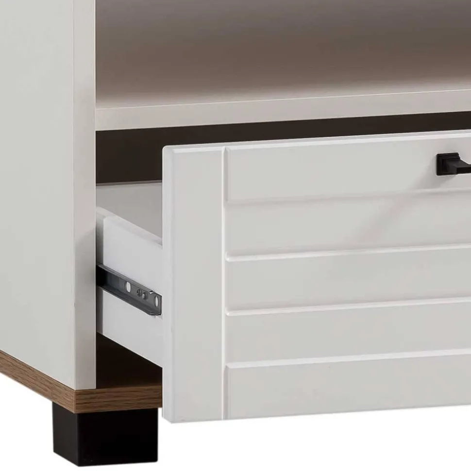 - Schwarze Kunststoff-Füße mit einer Höhe von ca. 4,5 cm, zusätzliche Kippsicherung bei Highboard und TV Board erforderlich und im Lieferumfang enthalten