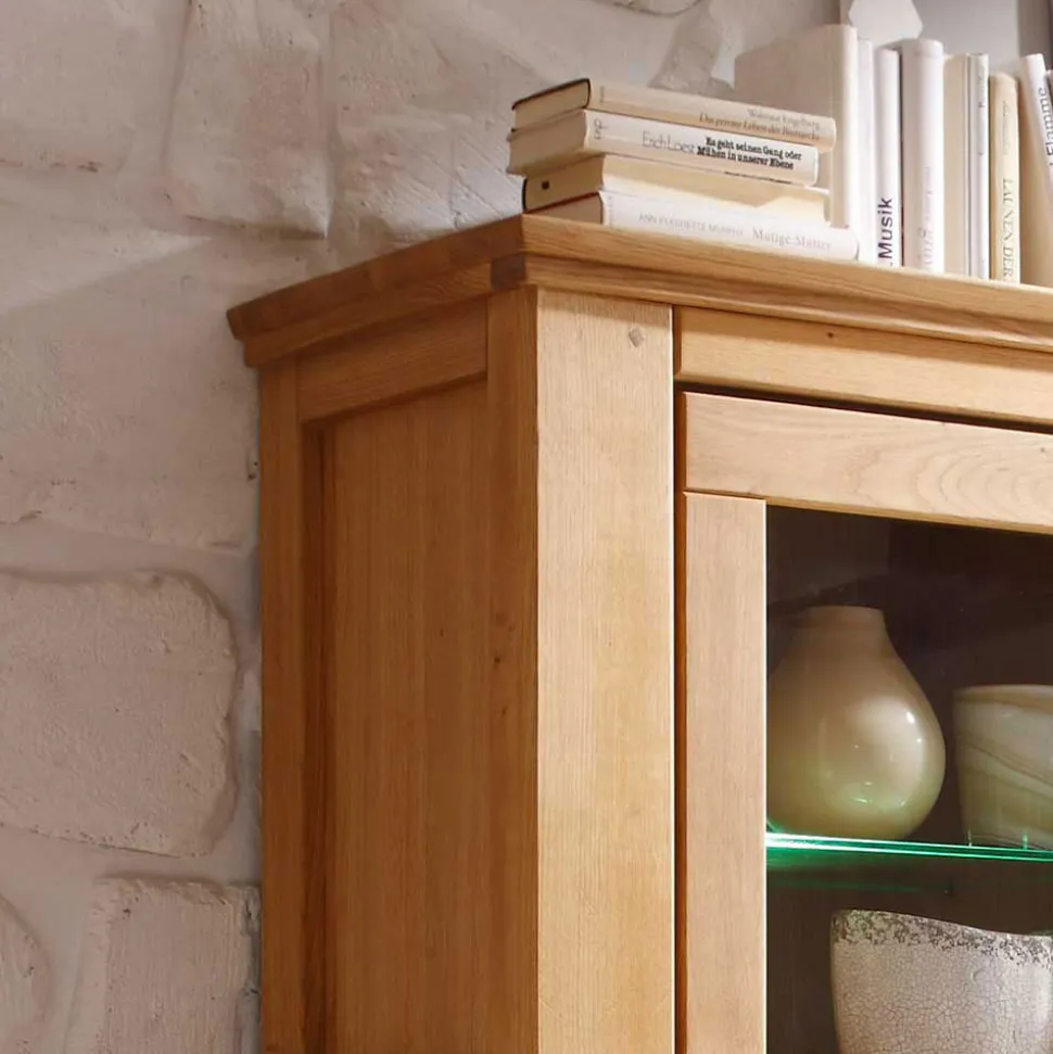 Für alle, die es besonders stimmungsvoll mögen, ist die Wohnkombination optional mit LED-Beleuchtung in der Vitrine und dem Highboard lieferbar. Dieses dezente Licht sorgt für ein gemütliches Ambiente und setzt Ihre Lieblingsstücke perfekt in Szene.