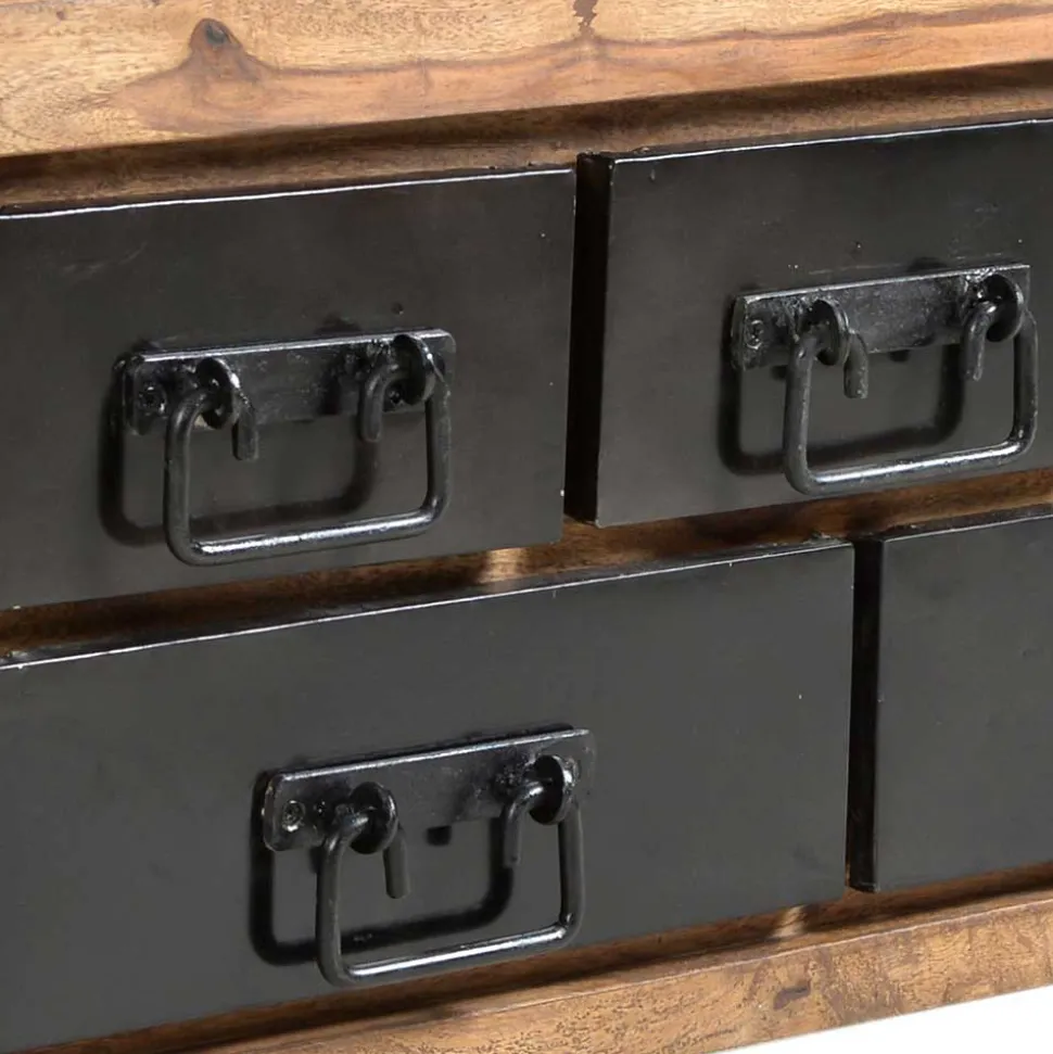 - Zwei grosse und drei kleine Schubladen mit antiker Metallblende