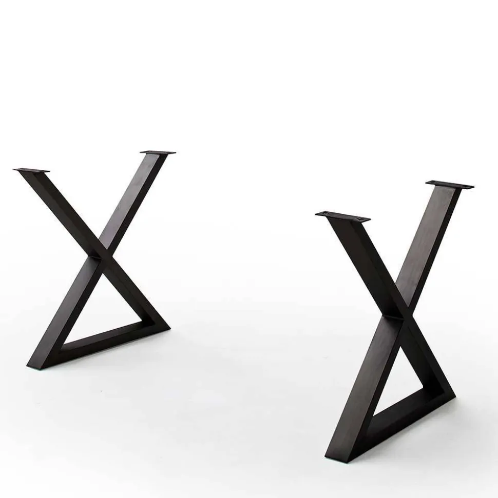 - Das X-förmige Tischgestell aus anthrazitfarbig lackiertem Metall sorgt für sicheren Stand
