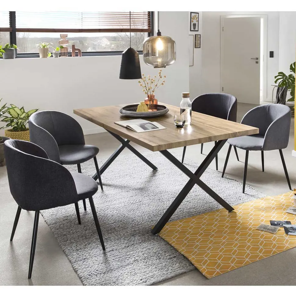 Inspiriert vom Charme alter Fabrikhallen und großzügiger Stadtlofts vereint der Industrial- und Loft-Stil rohe Materialien, klare Linien und eine gewisse urbane Lässigkeit. „Samanta“ verkörpert genau dieses Flair: Das solide Metallgestell in Schwarz erinnert an Industrieelemente, während die warme Holzoptik der Tischplatte und die weichen Stoffbezüge einen einladenden Kontrast schaffen – rau und charmant zugleich.