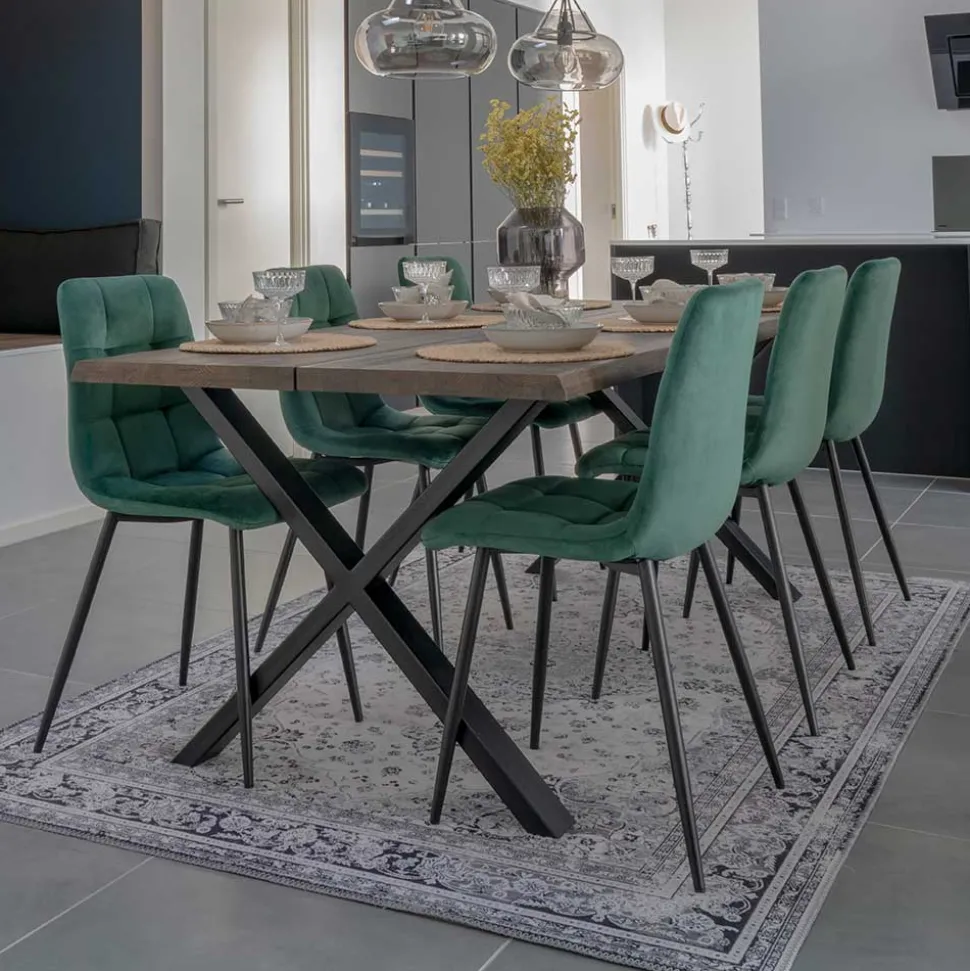 - Qualitätsvolle Essgruppe in Dunkelgrün, Eiche Rauchfarben und Schwarz